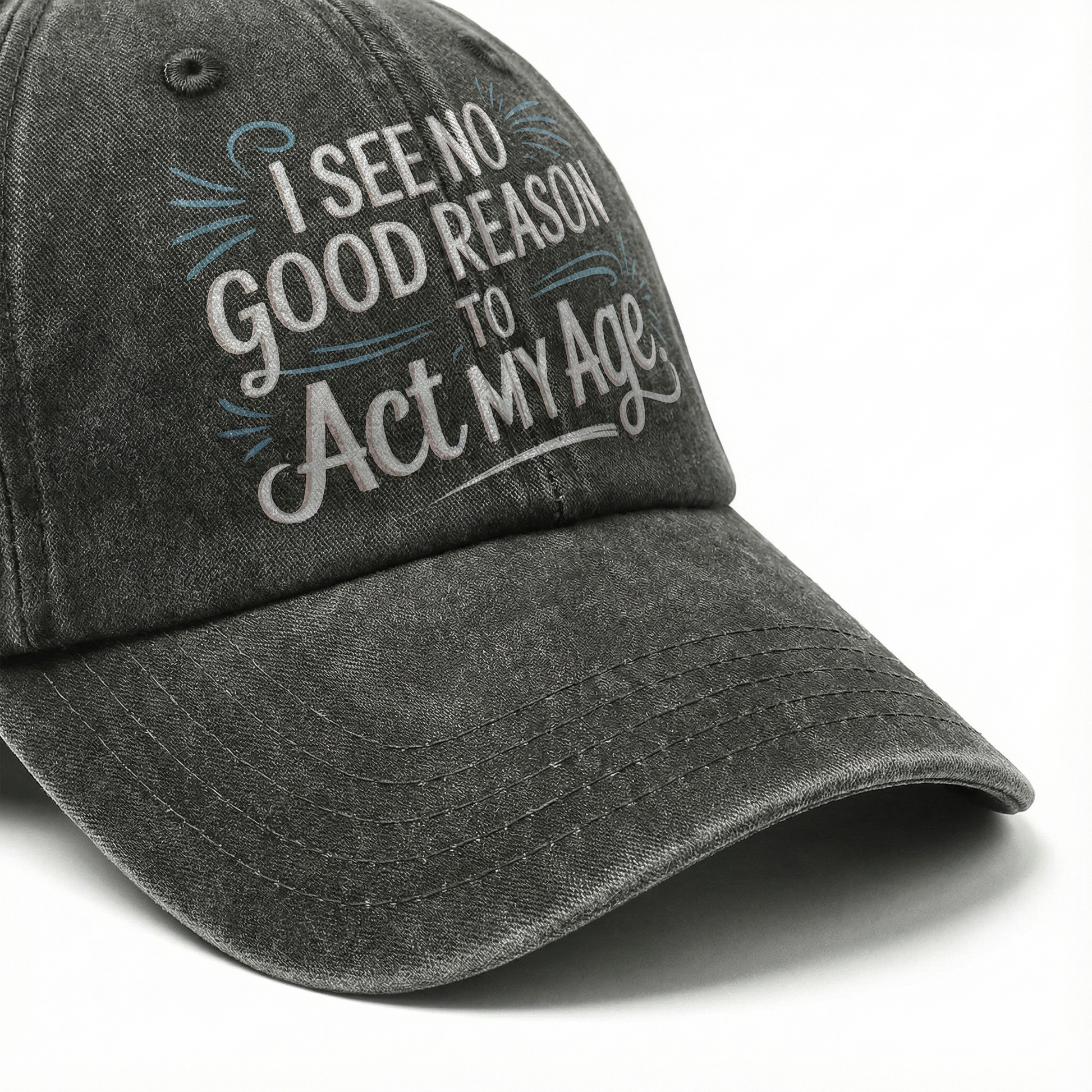 Who says you have to slow down just because there are more candles on the cake? Acting your age is boring. It means early bedtimes, sensible shoes, and complaining about the weather. This cap is for the rebels who still laugh at immature jokes, eat dessert first, and refuse to let a number define their energy. You are not old; you have just been young for a very long time.